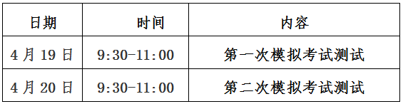 注:模拟考试将模拟正式考试的全部流程,考生需在此时间段进入在线考场,并按要求完成模拟考试。因未参加模拟考试而影响到正式考试操作的,后果由考生本人承担。